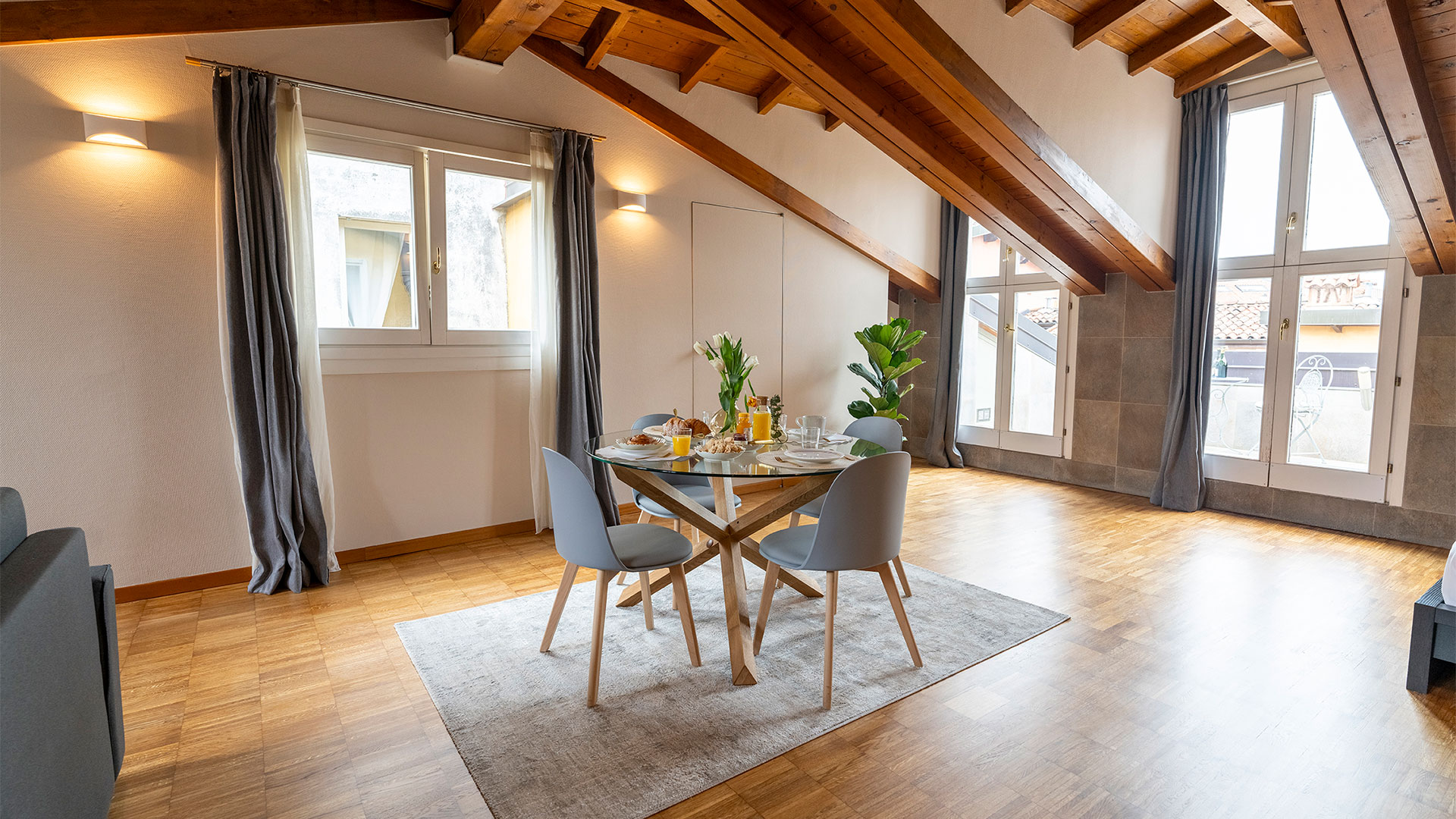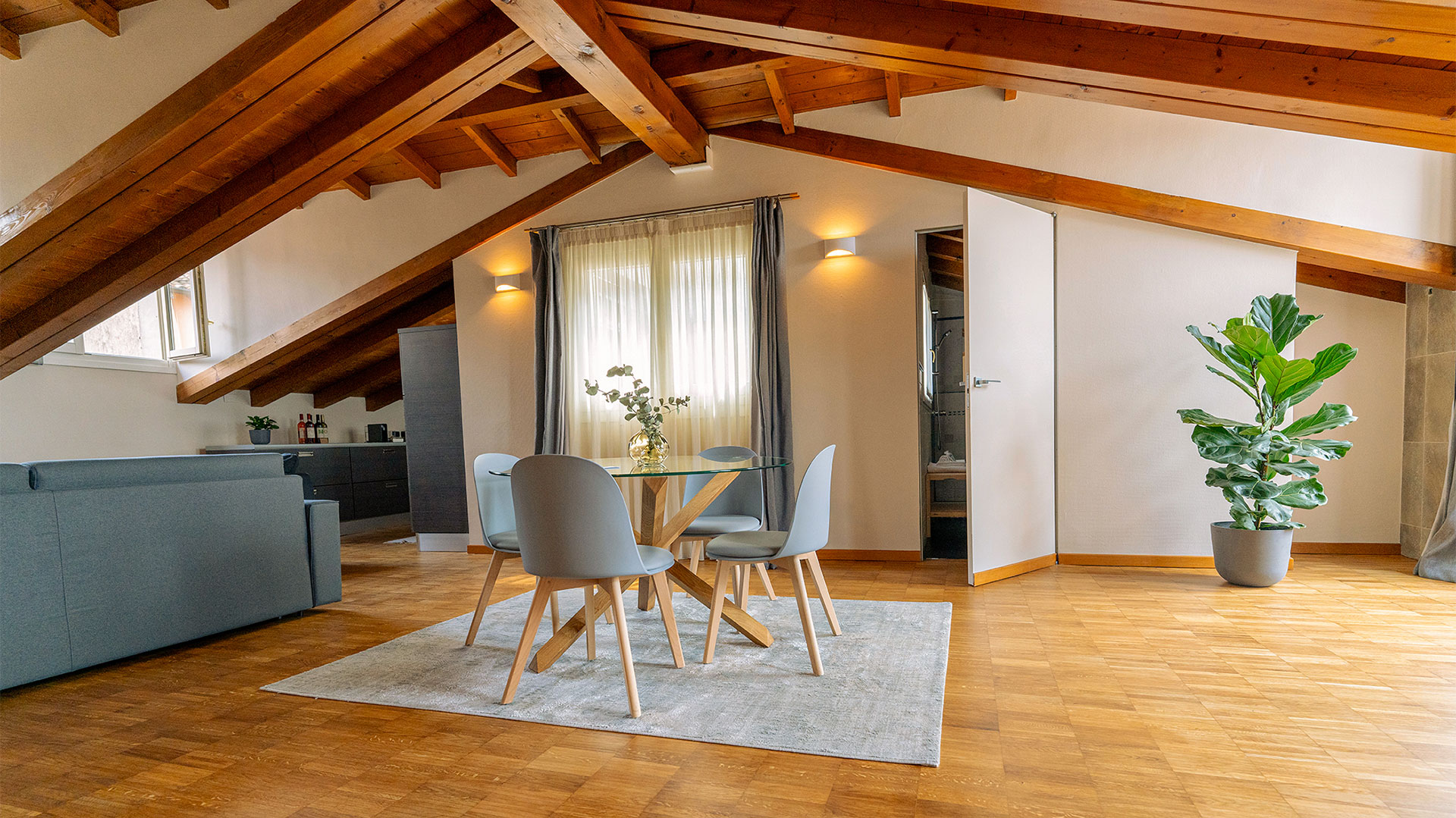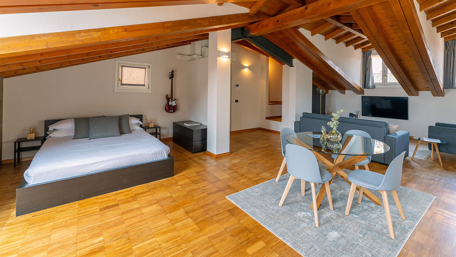 Un open space luminoso e dal carattere forte, situato nel cuore di Bergamo. Un elegante e spazioso attico nel centro della città con terrazza panoramica con vista sulla Città Alta.